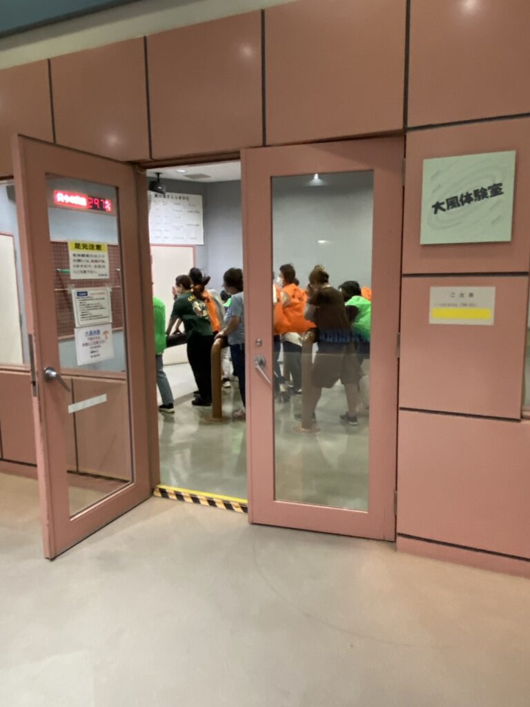 防災館では、風速30メートルの中の移動や、震度2から震度7の地震を体験してきました。