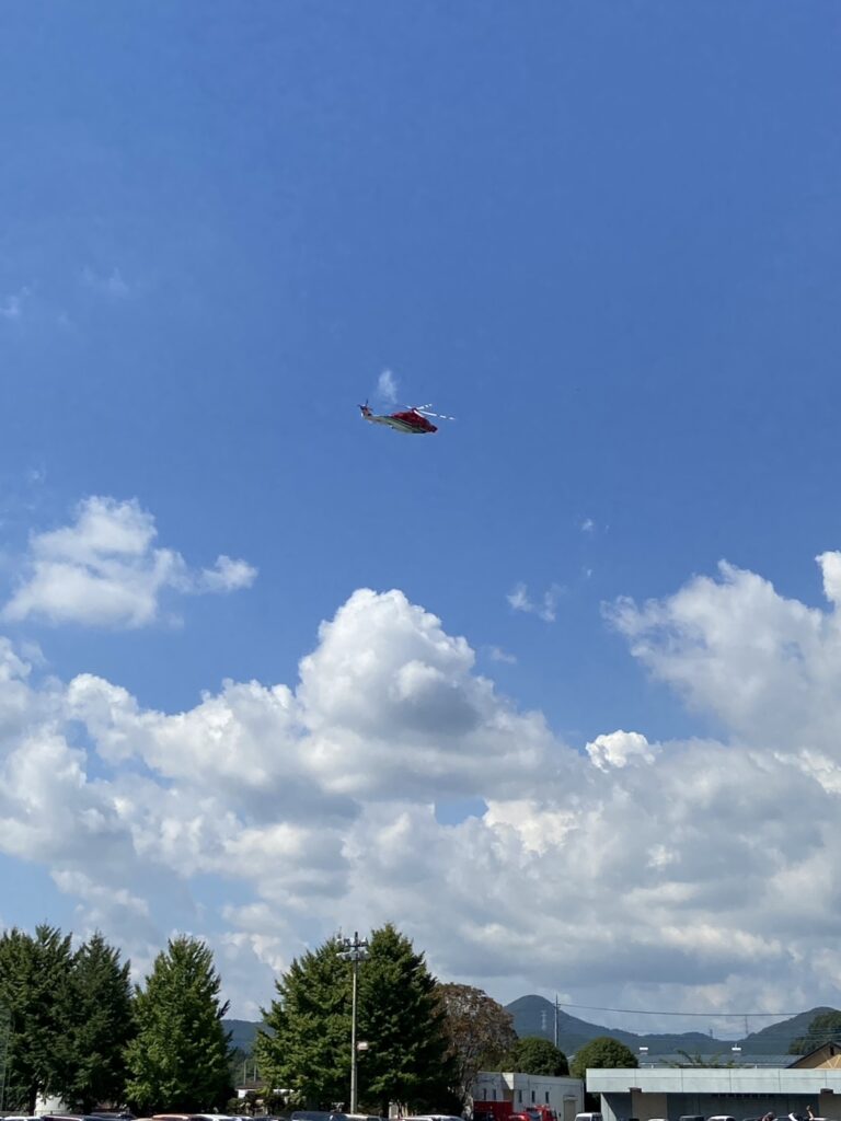 また防災ヘリコプター「おおるり」が、消防学校上空を旋回するサプライズもあり良い体験が出来ました。