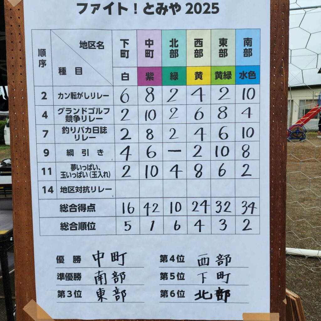 富屋小の優勝は赤組。地域の優勝は中町でした。