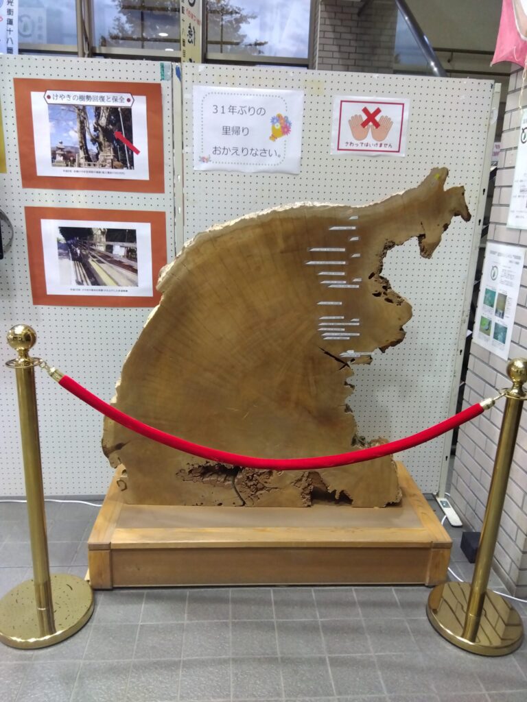 切り落とした枝(樹齢350年)の一部を、徳次郎では31年ぶりに展示していますので、ぜひご覧ください。